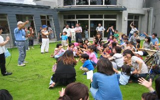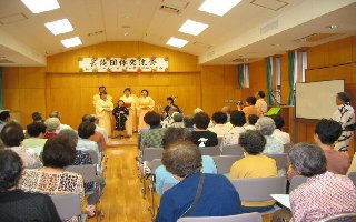 小さなお子様をはじめ、みんなで七夕さまを飾っていただきました。七夕祭りは、ふれあいセンター初の行事でしたが、100名余の参加者で賑わいました。 最後に『七夕さま』を合唱して、楽しい時間を過ごす事が出来ました。 当日はセンターの3周年を記念して、『芸能団体交流会』も開催され大変な賑わいでした。