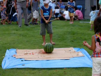 ふれあいセンター最大の催し物になって来ました。 今年は約500名近い人達に楽しんでいただき、大変な盛況でした。 和太鼓・フラダンス・スイカ割り・花火・マツケンサンバ等楽しんで頂きました。 模擬店は、スーパーボール・ヨーヨーつり・ポップコーン・金魚すくい・わた飴・焼き団子・アルコール等賑やかな出店でした。 たくさんの人の来場があり、用意した品物が無くなってしまい、大変申し訳ありませんでした。