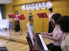 第2回 芸能団体交流会では、6団体が参加しました。 @詩吟 (秋津詩吟研究会) Aバイオリン (バイオリンボランティアの会) Bコーラス (フラウェンコールひまわり) C日本民謡 (第三秋生会) D舞踊 (藤の会) Eフラダンス (秋津カプアエ)