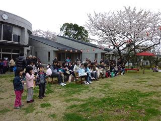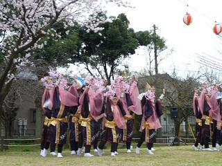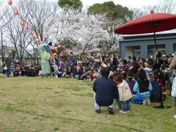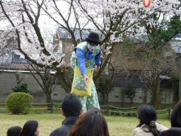 センターの桜も満開 ピエロのマー君 ダンスパフォーマンス集団“迫”のみなさんをお迎えしての桜まつり。