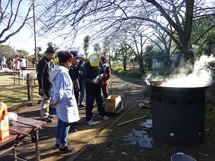 空気は冷たいけど抜けるような晴天の12月の日曜日 センター恒例の“いも煮会と健康体操”が開かれました。