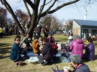 センターの芝生の庭では、あちらこちらで笑顔が青空とともに広がりました。
