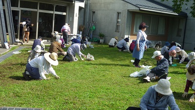 お陰様で芝生の庭に勢いを増すクローバーと周辺の除草作業を進めることが出来、 当センターの庭は見違えるようにきれいになりました♪