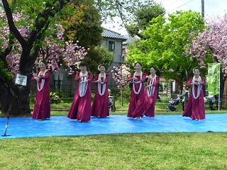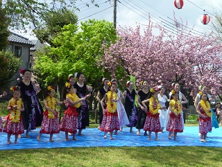 センターさくら祭を盛り上げてくださった“ハウオリフラオハナ”の皆さん ピエロの“ま−君”本当にありがとうございました♪