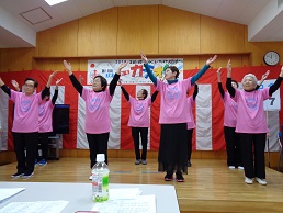 センター登録の舞踊の会の皆さんによる“きよしのズンドコ節”揃いのTシャツで踊っていただきました。