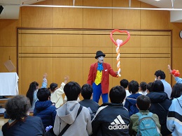 あいにくのお天気となってしまいましたが、センター大集会室は元気いっぱい マー君の風船芸にちびっ子たちの目がキラキラと輝いて見えました