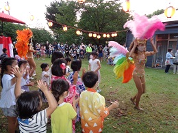 ちびっ子たちも大喜びでサンバお姉さんの後を見様見真似の振り付けで踊ってくれました