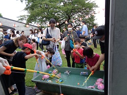 大人気射的・ヨーヨー釣りに加えて新登場輪投げにちびっ子の行列