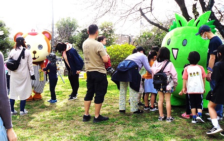 ひがっしーポンタ君もふれあいセンターの桜まつりに駆けつけてくれました