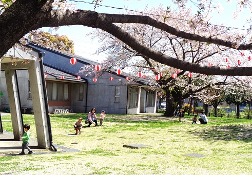日差しも柔らかく木々の緑も美しい良い季節となりました。 センター芝庭は毎年この桜の季節と秋の紅葉の季節に開放して地域の皆様の憩いの場として散歩の途中、また小さいお子さんの休憩の場として楽しいんで頂いております。今年もたくさんの方々に来ていただきました。 4月27日(土)からはこいのぼりが元気に泳ぎ始めました。 子供たちは元気いっぱい今年の八重桜は特別見ごたえがありましたこいのぼりも子供たちに負けない位元気いっぱい