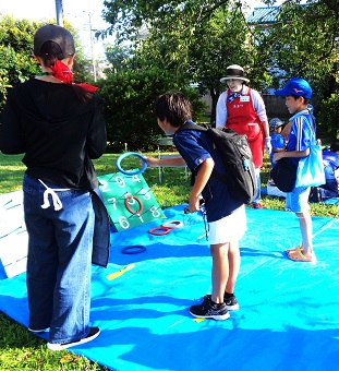 センター芝庭にはゲームチケットの列が出来ました 輪投げ ほしい景品が取れるかな ![]()