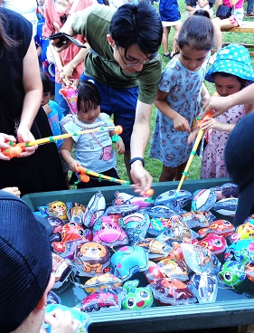 狙って狙って〜射的は真剣そのもの ヨーヨー釣りは大人気 ![]()