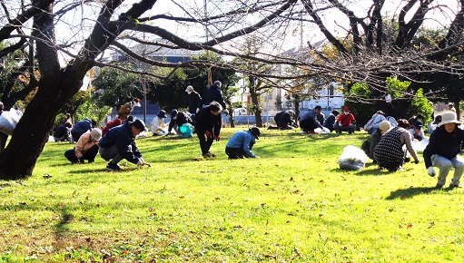 草はさほどではなかったのですが、桜の落ち葉が散乱していたふれあいセンターの前庭