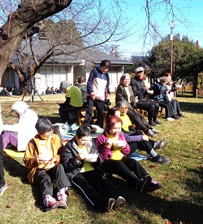 センター芝庭には温かいいも煮と笑顔の輪が広がりました